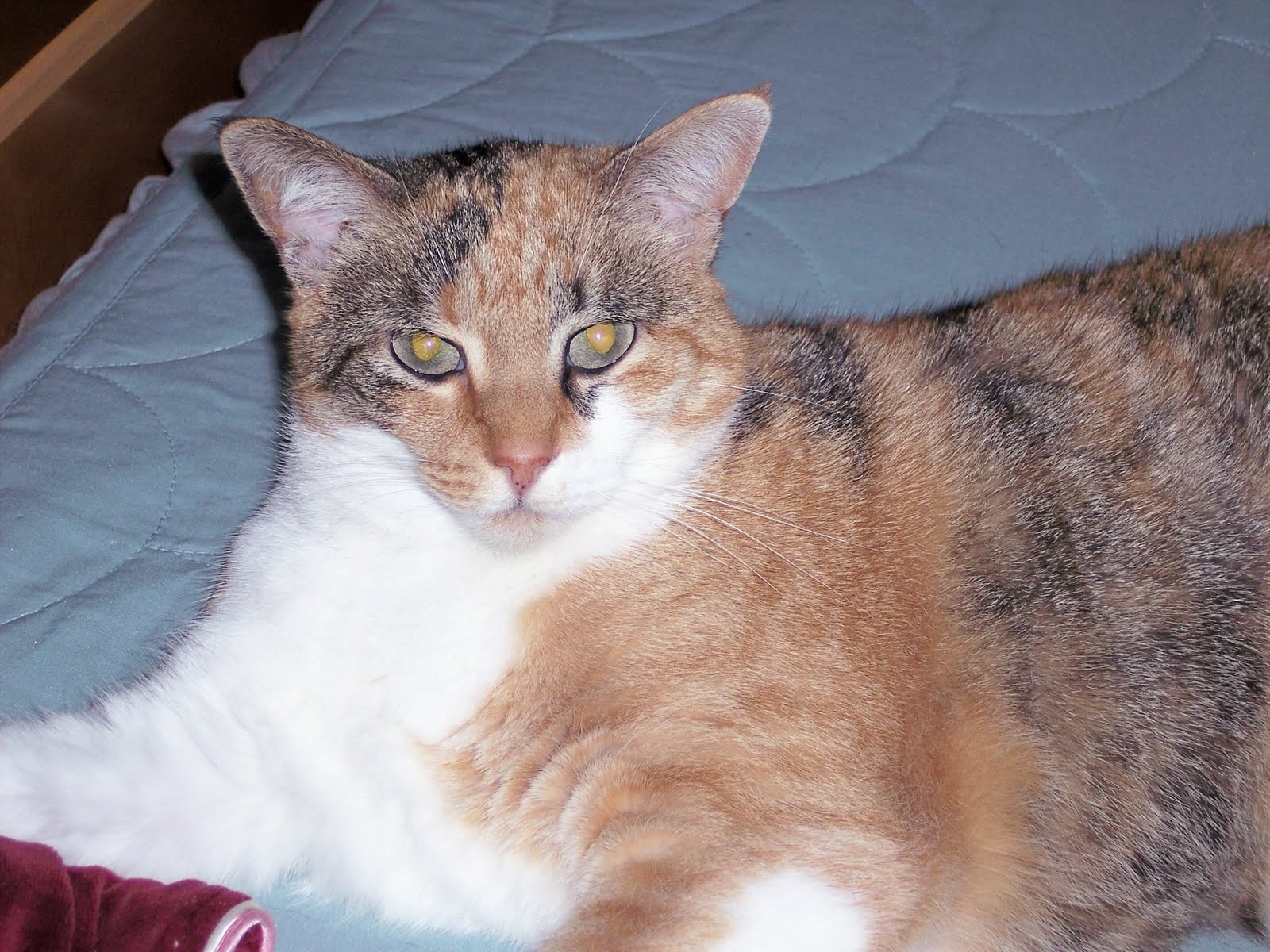 He’s the feline equivalent of Rosie. Bossy, destructive and sprays inside the house when he’s pissed off. He pretends he’s tough but he’s really a big wuss. He started as an outdoor cat but the folks finally transitioned him indoors to cut down on the vet bills. It was getting expensive to have him stitched up every time he lost a fight. Which was always. He still mostly ignores me except when he has to step over me to get to Mom’s lap. But he’s a good old boy in his own way and we love him.