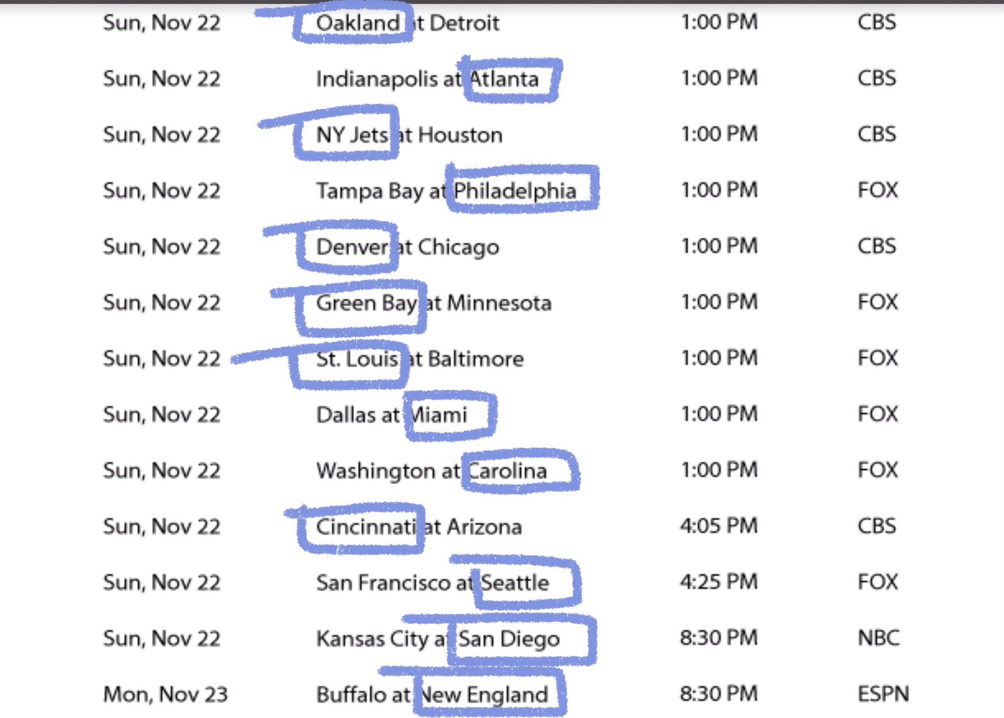 Took Bears, Colts, Panthers, Jets early. Have Minn, Cinci and Seattle later.