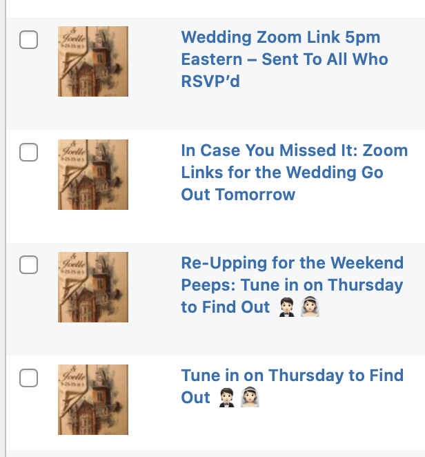 I got wedding zoom RSVPs from each of the 6 of my posts that went up across the whole week.
