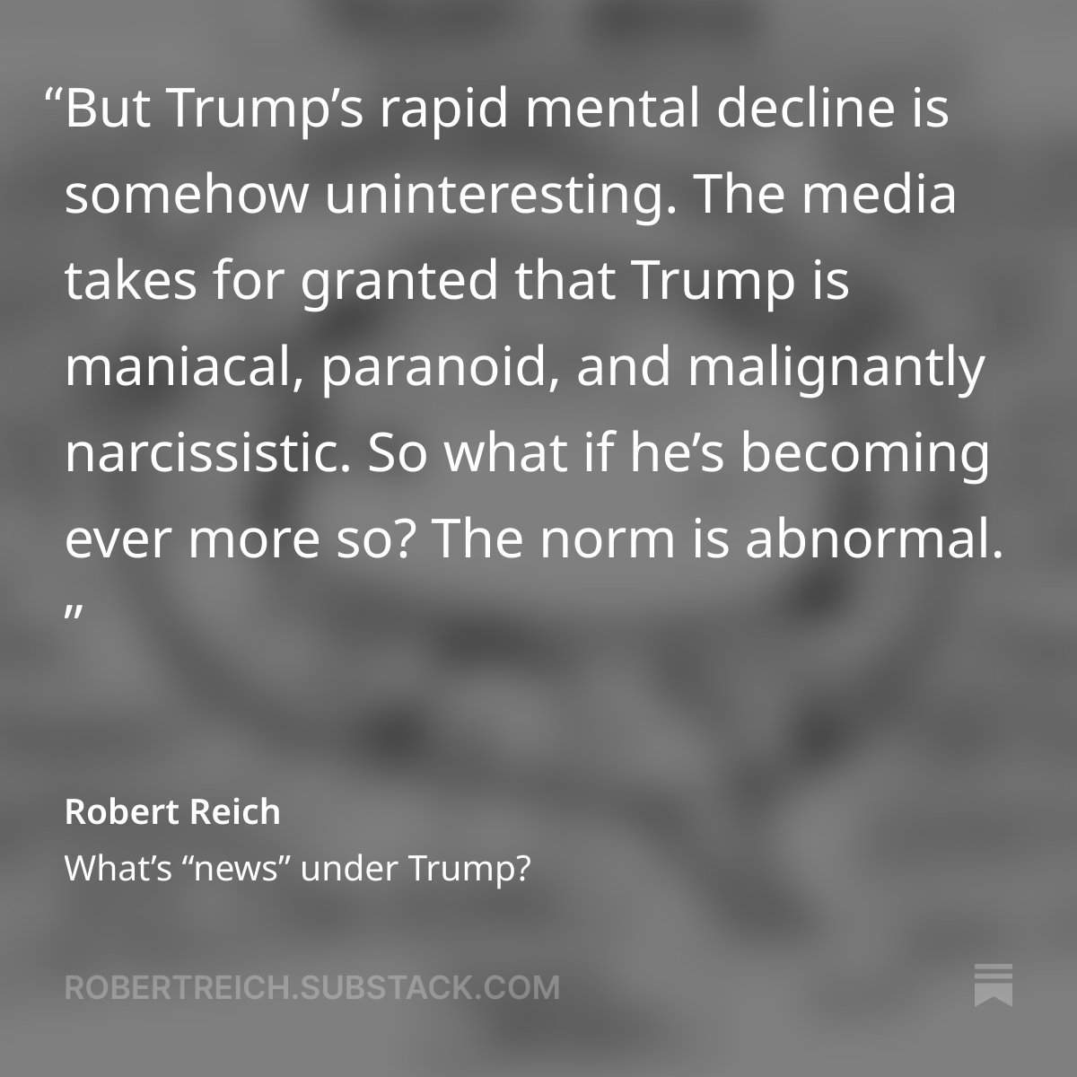 The other failure of news that bugs me on a daily basis is that we’re still getting news stories accepting at face value the stated “objectives” of their actions. (And this is about his more competent minions, not about his addled brain.) So we get coverage of the assaults on cities that dutifully state that they were sent in to deal with crime, or their attacks on universities as an “effort against antisemitism,” just to name a few. We get stories about how officials are found to be lying in court, and stories about how ever more law enforcement officials are being moved from, y’know, crime, to immigration enforcement, but somehow that never filters back to the general news that more people see.