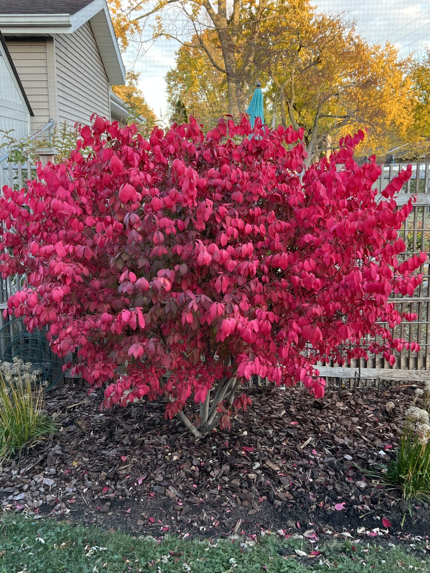 I usually get 3 weeks of this glorious burning bush before it fades.