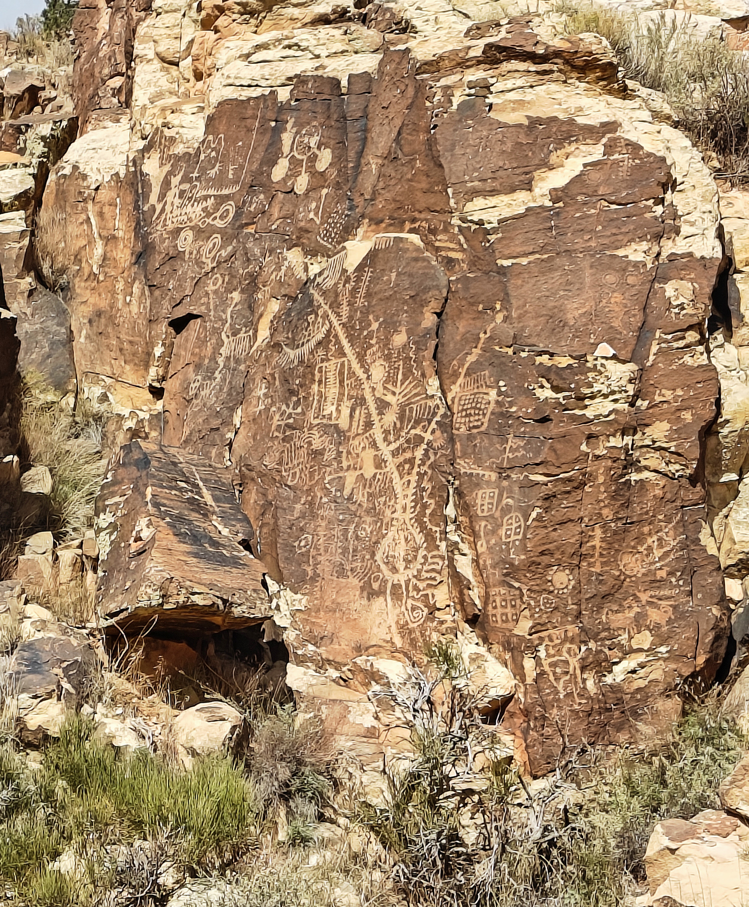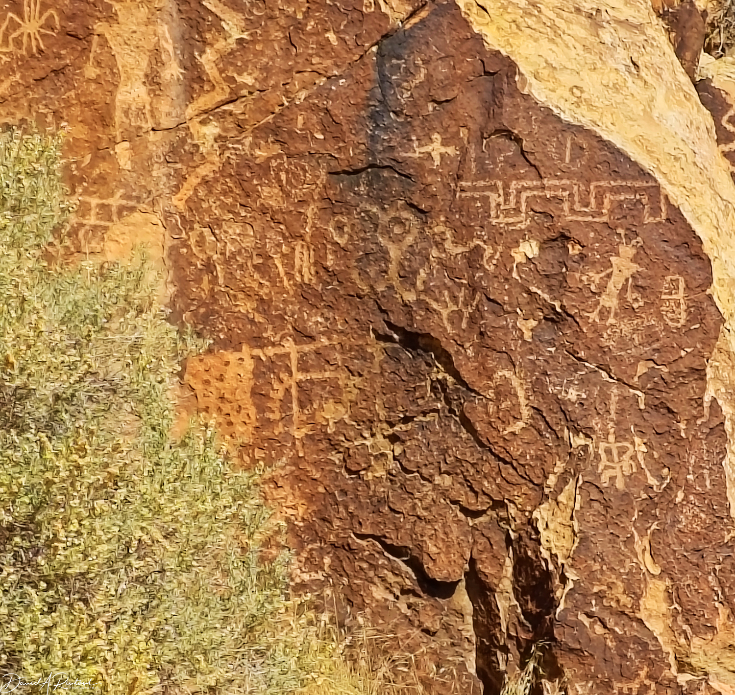 The Gap is a canyon through a ridge in the middle of the high desert, carved by water and wind into the Navajo Sandstone. A road cuts through the gap, which must have been a trail long used by the indigenous inhabitants of the area, and allows access to viewing of an astonishing number of petroglyphs. One of the most famous ones, the “Zipper Glyph” was showcased in a previous post in this series. There are plenty more, like this one. Click here for larger image.