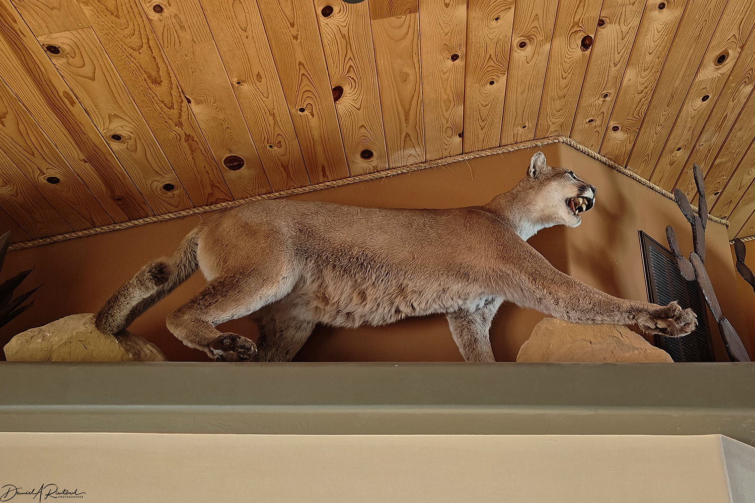 Our next destination was a B&B in Springdale, just outside the main entrance to the park. My sister-in-law was in charge of making reservations for this trip, and this place appealed to her for many reasons. But I suspect even she did not know that there would be a cougar taxidermy masterpiece above the shower in the bathroom in our suite. Click here for larger image.