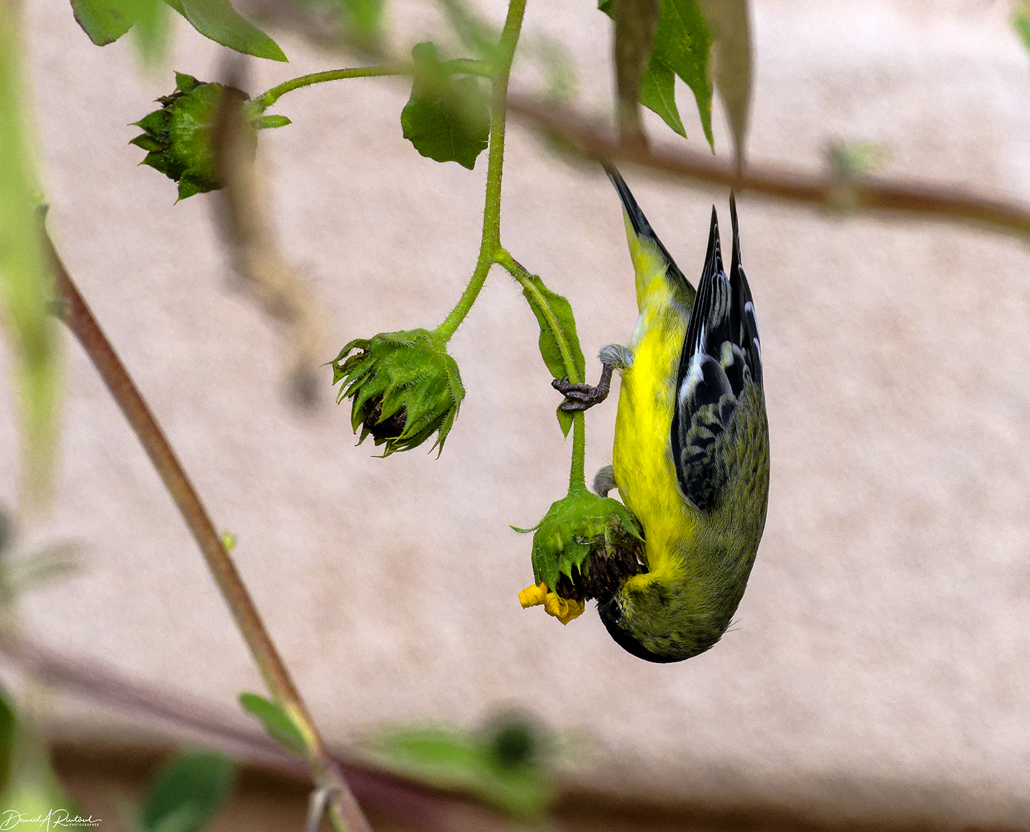 And finally, a bird! Lesser Goldfinches (Spinus psaltria) were chittering and feeding on the last sunflowers of the season in the garden area of the B&B. Click here for larger image.