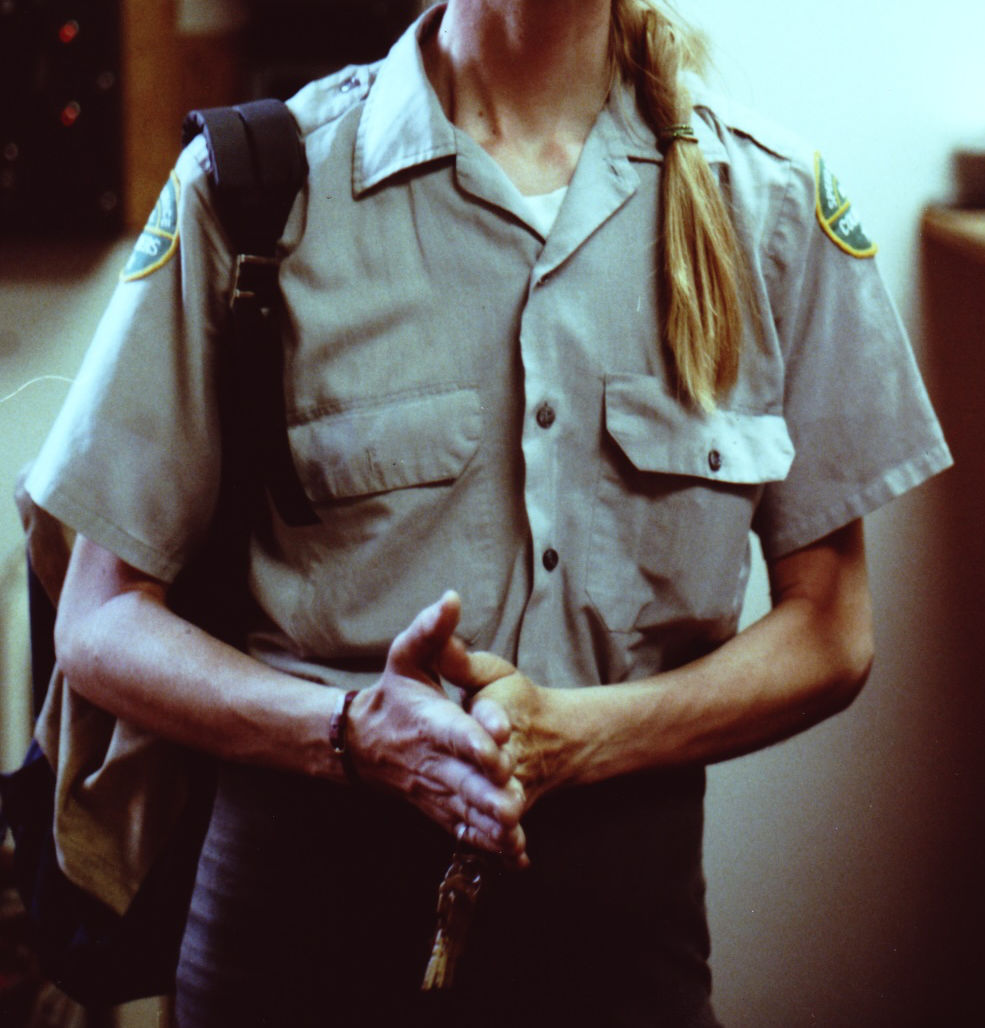 While most motorcycle and bicycle messengers wore whatever they wanted and indeed some riders looked like someone you would not want to meet in a dark alley, Speed Service riders were issued a gray button-down shirt, with tidy green patches on each shoulder with the Speed Service logo, and were expected to wear black pants to complete the outfit. Motorcyclists wore “shorty” white helmets with a black visor, like the police riders, and our radios were not clipped at our waist but slung over our shoulder with a microphone up near our mouth. At a quick glance we were indistinguishable from the many police services littering the DC area and that was likely part of the point of it: to generate less official scrutiny as we went about our business. Pete actually put this to good use one day when, after being cut off by an out-of-town motorist, he ordered the frightened driver to “pull over and wait here until I get back” before he spun off.