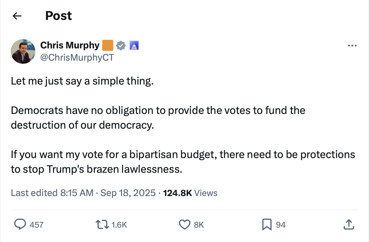 — Chuck Schumer (@schumer.senate.gov) September 18, 2025 at 4:38 PM