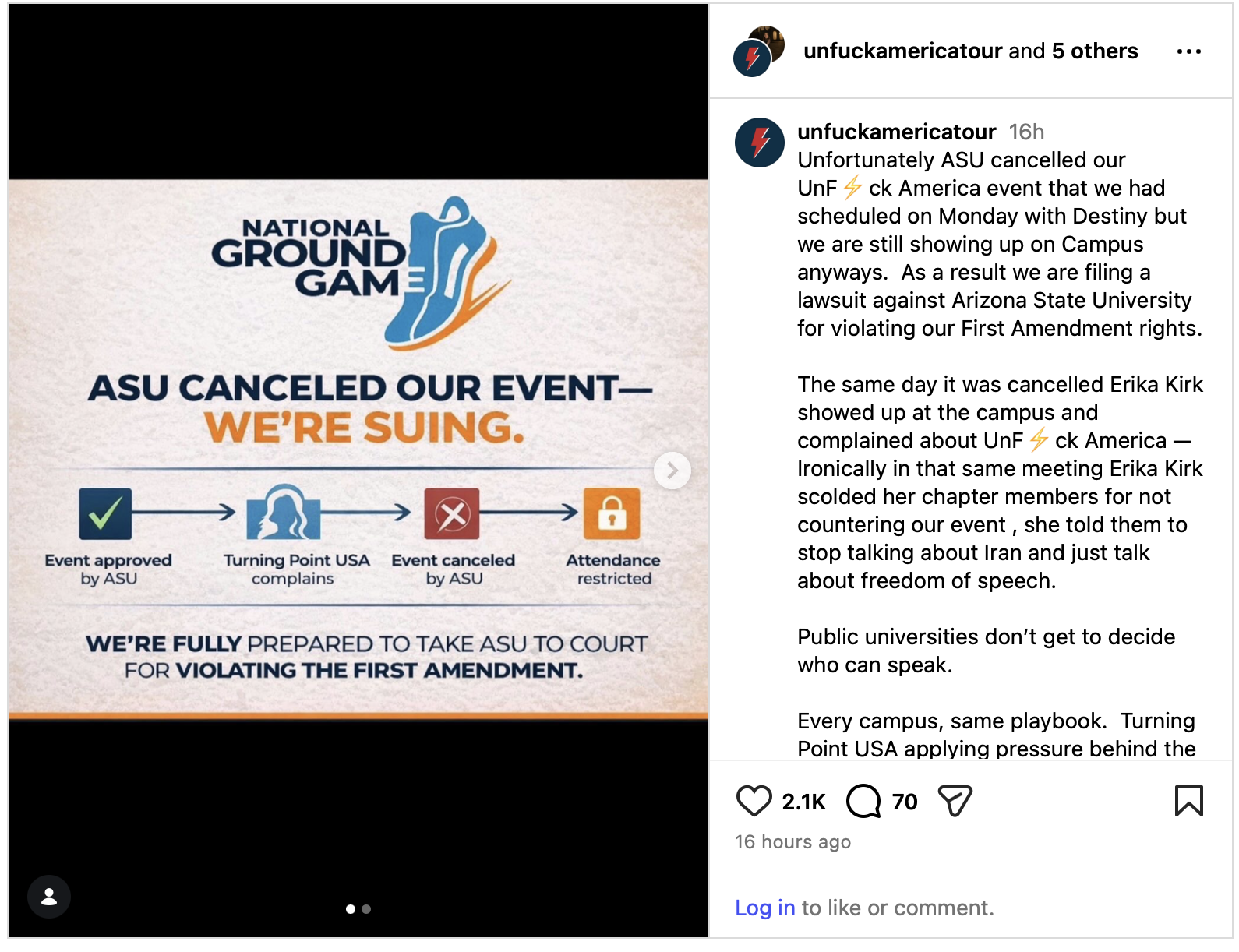 National Ground Game and Unfuck America – Funding a Campus Event in North Carolina