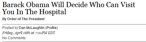 Because our socialist Kenyan President has nothing better to do than decide who visits you in the hospital- BEFORE YOUR DEATH PANEL.